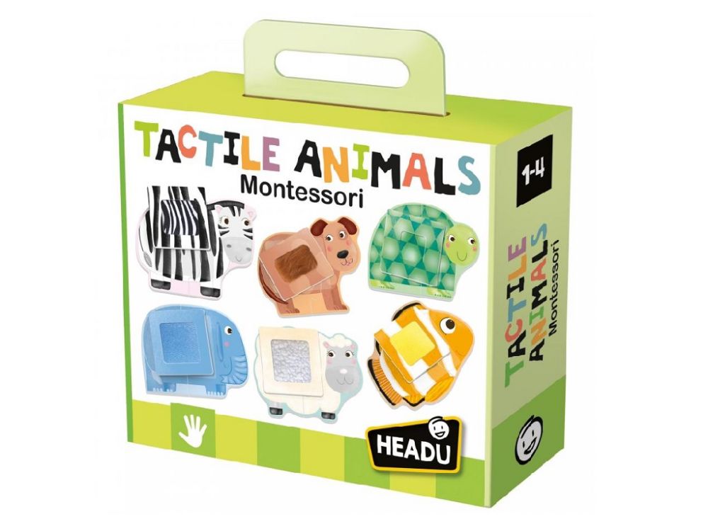 Prikupni ovčka, zebra, kuža, želva, slon in riba v obliki sestavljanke iz dveh kosov ter pripadajočih senzornih ploščic, so odličen način, s katerim otrok skozi igro razvija prstne spretnosti, zraven pa utrjuje še poimenovanje živali. Površina vsake ploščice je iz drugačnega materiala, kar otroku daje možnost različnih tipnih izkušenj, poleg pa s pomočjo odraslega ubesedi občutke, ki jih zaznava pod prsti ( gladko – hrapavo, mehko - trdo, itd… ).