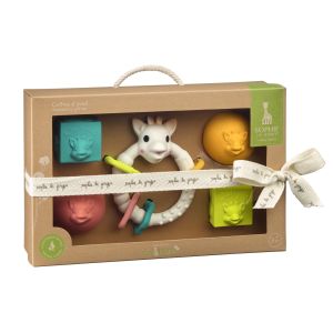 Žirafa Sophie je naravno grizalo, ki pomaga dojenčku blažiti boleče dlesni, ko mu rastejo zobki, in je prva dojenčkova igračka, ki stimulira vse njegove čute. Narejena je iz 100% naravnega kavčuka (brez ftalatov), pridobljenega iz soka drevesa kavčukovca, iz fleksibilnih, obnovljivih materialov in netoksičnih barv, ki se uporabljajo v živilski industriji, kar pomeni, da je varna in naravna igrača.